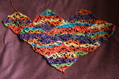 W międzyczasie zaczęłam dziergać chustę. Niestety, nie pamiętam na jakiej stronie znalazłam wzór, ale jest on na tyle prosty, że dałam radę go opanować bez problemu :) Do stworzenia znalazłam cudowną włóczkę, niestety, w mojej ulubionej pasmanterii Panie miały tylko jeden motek i nie potrafiły mi powiedzieć, czy można by zamówić więcej w hurtowni. Do stworzenia chusty na ramiona, potrzebne mi będą jeszcze ze dwa motki, ale postaram się znaleźć tą wełnę w jakiejś pasmanterii internetowej.