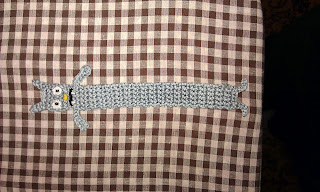 W okresie przedświątecznym mój terminarz jest dość zapełniony. Zwykle zostawiam ten czas na realizację zachcianek i zamówień moich znajomych, bo często "budzą się" w ostatnim momencie i proszą mnie o wykonanie prezentów dla swoich bliskich. W tym roku postanowiłam nie dać się sterroryzować i uprzedzałam już w październiku: "chcesz prezent? masz czas do końca listopada. Potem nie robię!". Jak się okazało - metoda poskutkowała :) Wszyscy znajomi, którzy zgłaszali się zwykle w ostatniej chwili pozałatwiali wszystko o wiele wcześniej! Ale dość tego mojego spamu ^^" Zamówienie na świąteczne prezenty złożyła u mnie również Dagmara :) Na jej życzenie stworzyłam dwie zakładki. Pierwsza przedstawia Wiktora czyli ulubioną zabawkę jej córeczki, a druga to kotek, koniecznie w łaty!