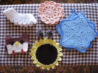 - z kategorii do domu przygotowałam dwie gwiazdki, które mogą mieć wiele zastosowań. Mogą służyć jako "łapki" lub podstawki do gorących garnków, jako zmywaki do naczyń lub myjki do ciała :D Zrobiłam także dwa typy podkładek pod kubki :)